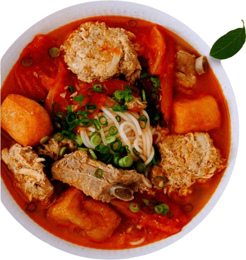 A rich and flavorful Vietnamese soup featuring fresh crab meat simmered with ripe tomatoes, eggs, and aromatic spices. The broth is slightly tangy and savory, offering a perfect balance of seafood sweetness and tomato freshness — a comforting and satisfying dish.