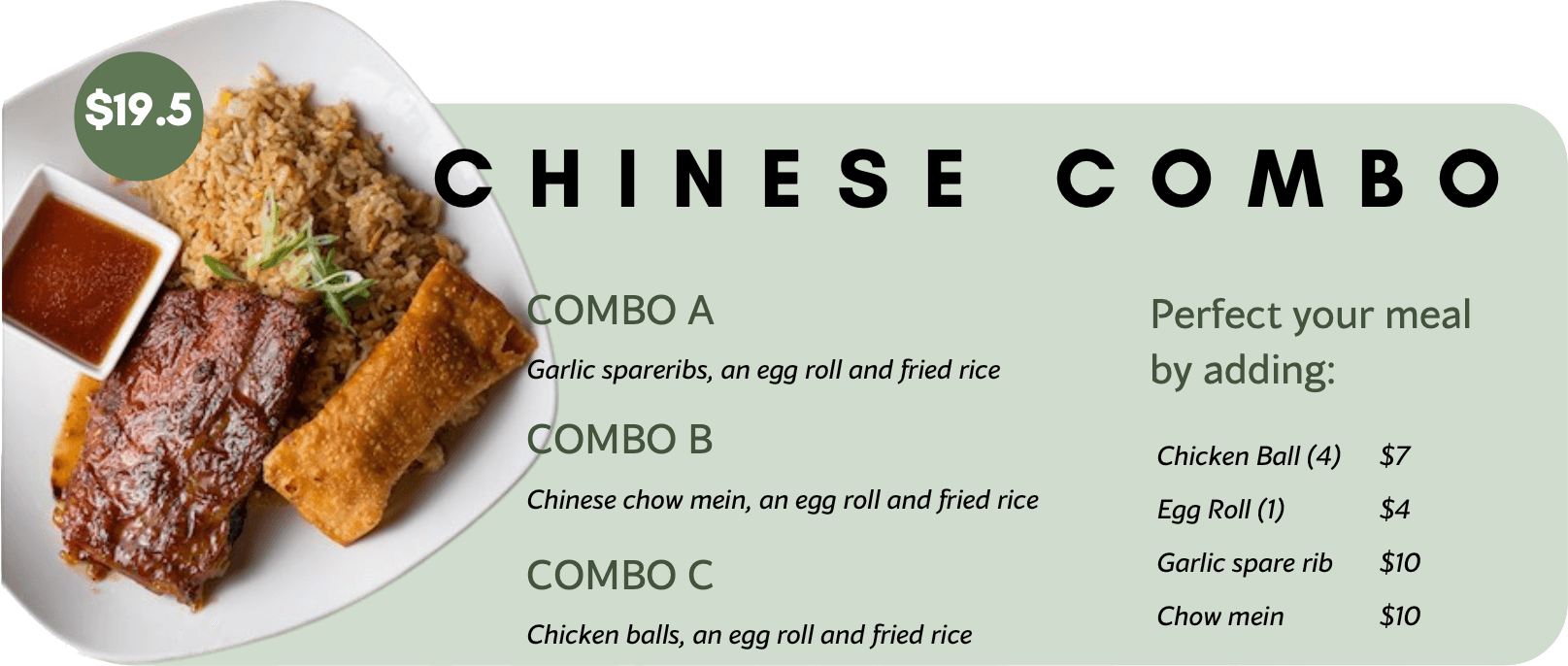 Upgrade to fried rice, vermicelli or soft/crispy noodles for $2
